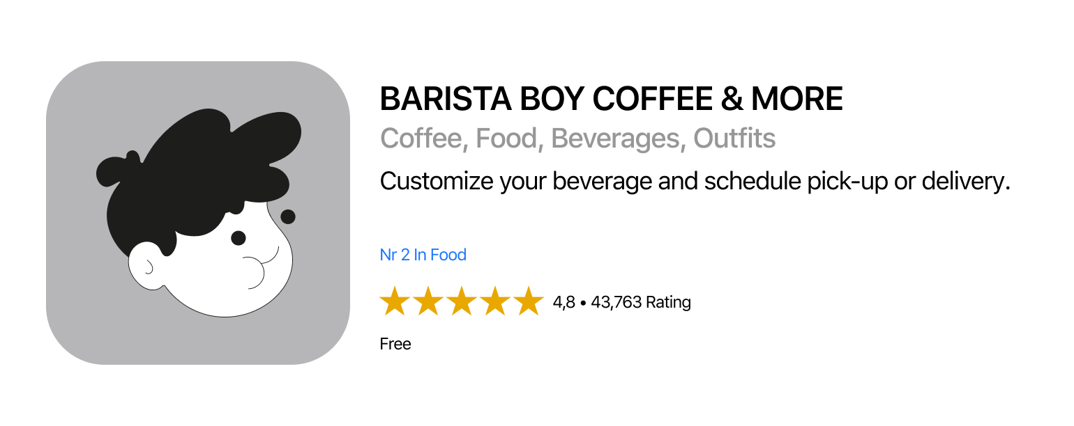 Barista Boy short (B`BOY) is inspired by the rich traditions of coffee culture from around the world, their menu boasts an extensive range of handcrafted beverages. Whether you crave a classic espresso, a cold brew coffee, a hot chocolate, or even vanille / chocolate milk for the kids. THE baristas will carefully customize the drink to suit the client unique preferences. The source of their premium coffee beans are from sustainable and ethical growers, ensuring that each sip not only delights the taste buds but also supports a socially responsible cause. In addition to their in-house cafe experience, they also offers a convenient and seamless online ordering platform. Whether you're on a tight schedule or simply prefer the comfort of enjoying their favorite coffee at home. Also the intuitive app allows you to order ahead, customize your beverage, and schedule pick-up or delivery.