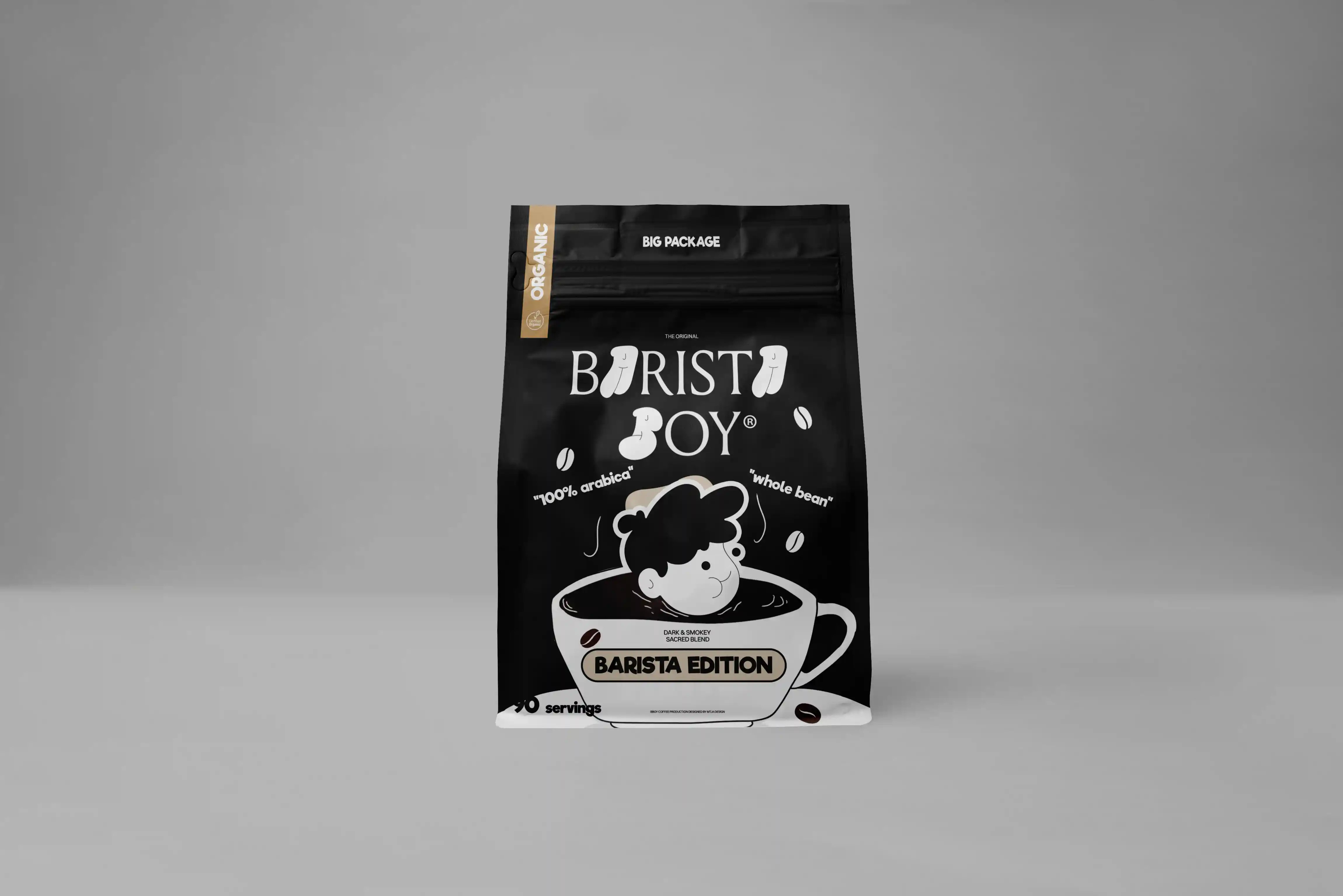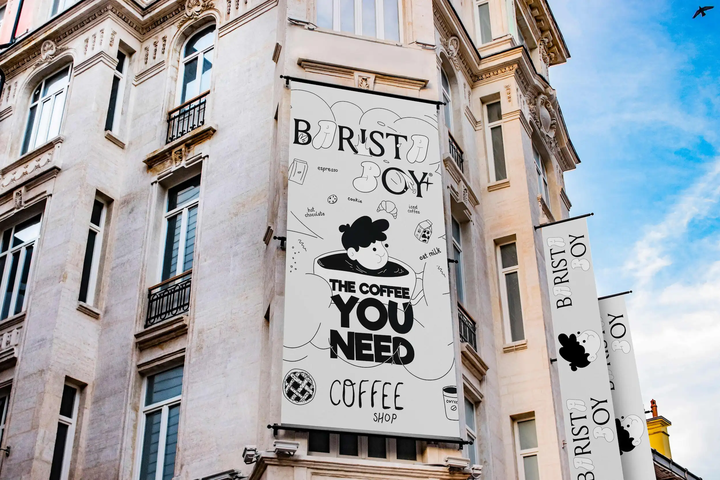 That Logo is pretty special. My thoughs for a stylish and vibrant barista cafe brand identity is, i opted for an eye-catching combination of a bubble playfull font along with a classic serif font. The bubble font representing the energetic and creative atmosphere of the brand and is handmade. Its playful curves and bold strokes convey a sense of fun and charisma, capturing the attention of passersby and enticing them to stop and engage with the product or cafe itself. I incorporated a timeless serif font for a touch of elegance and sophistication. The intricate details and slight contrast in the serif letters add a touch of refinement to the brand identity, highlighting the barista cafe's commitment to delivering premium quality coffee and beverages. This harmonious fusion of the bubble graffiti and serif fonts creates a visually striking and distinctive brand identity. For the Logo itself i drew a Boy wich is inspired by the retro vintage characters with a mix of today minimalism. It is the "FACE" for this brand & products.