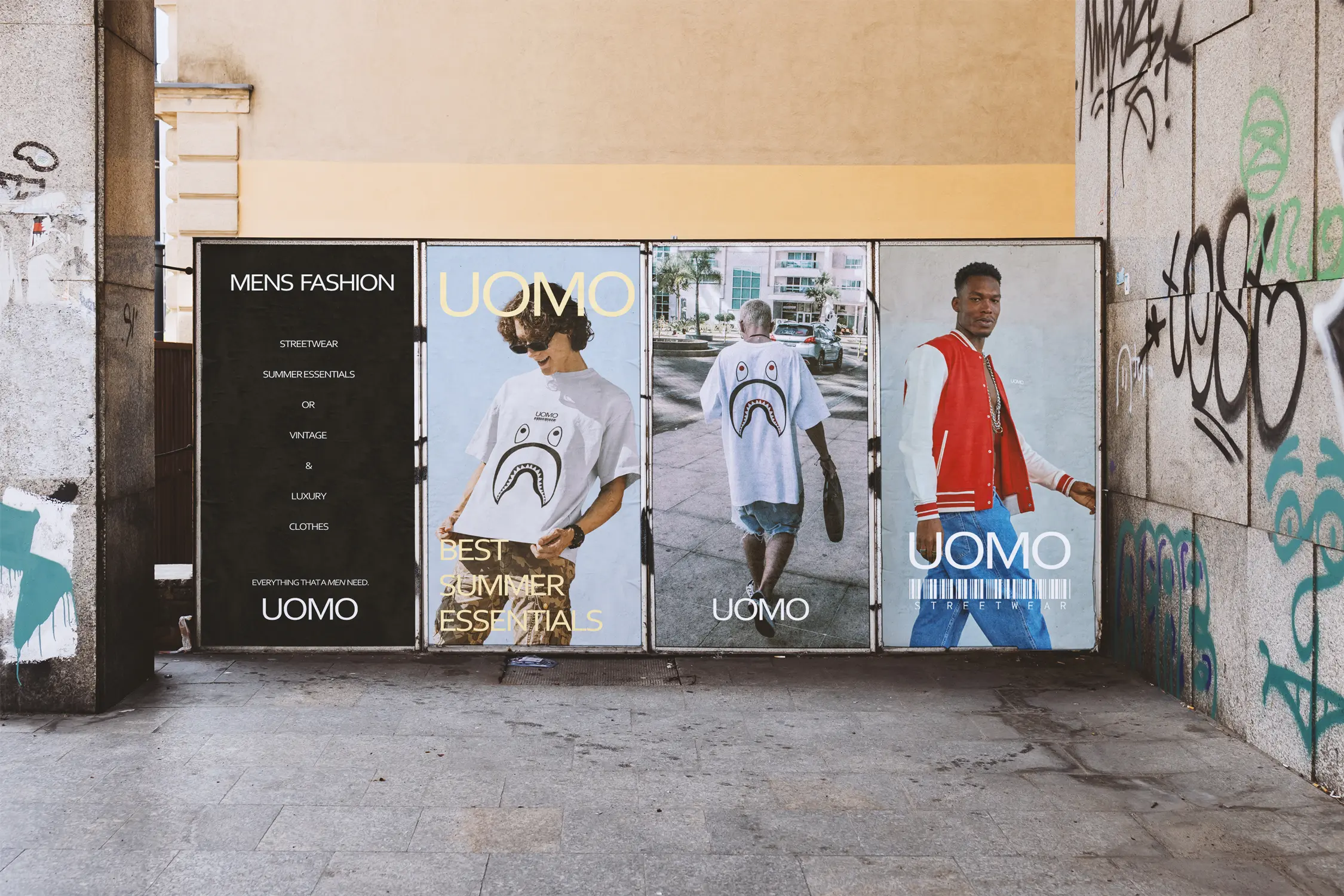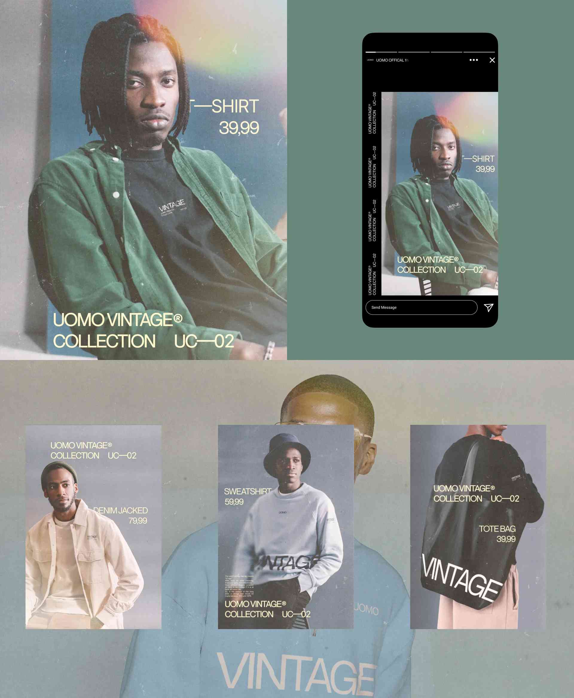 UOMO Classic is the streetwear Collection. Uomo Vintage is the mix of the 90s vintage vibe with a modern day style. poster and pictures are designed with a “scanned” texture wich gives them an asthetic look. Uomo Luxury is the “luxury” collection. its designed for men who chose an elegant timeless style, with an exclusive look. pictures and poster are designed with a “tv asthetic”. this stlye elevate the vibe of this collection. i also have some other collections in mind. one of them is a fitness collection & the other is a “cyberpunk” collection wich is very much in demand these days.