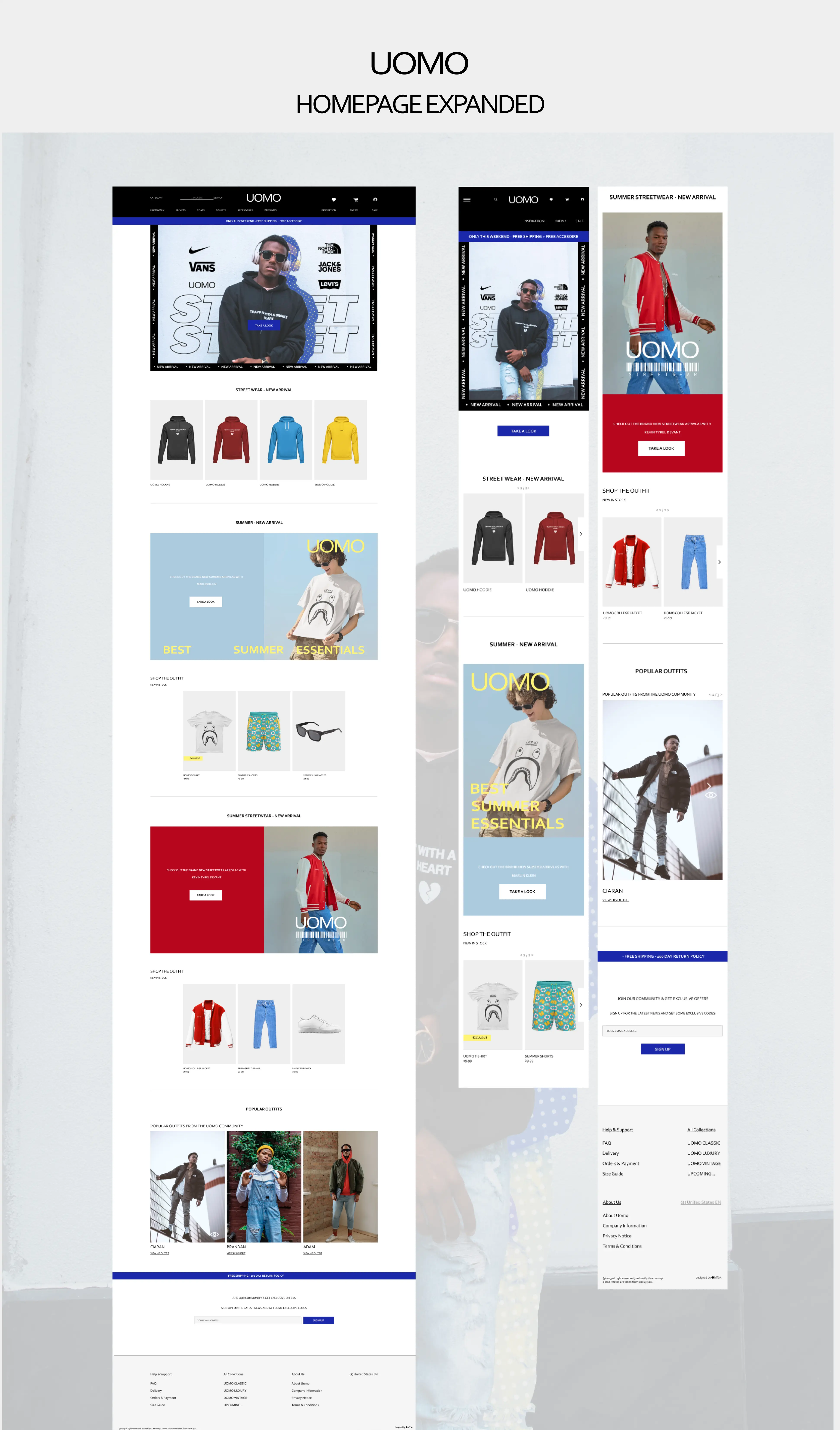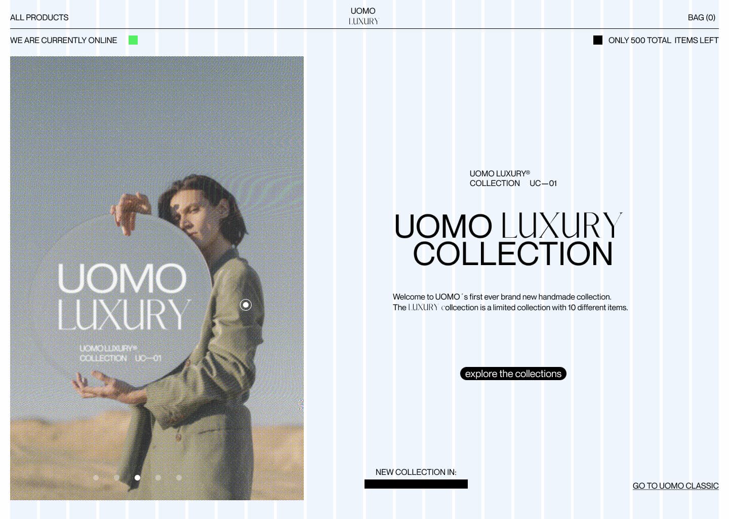 UOMO is an e-commerce store, but has its own brand, wich delviered every 3 months a different collection wich has his own webiste and flair.